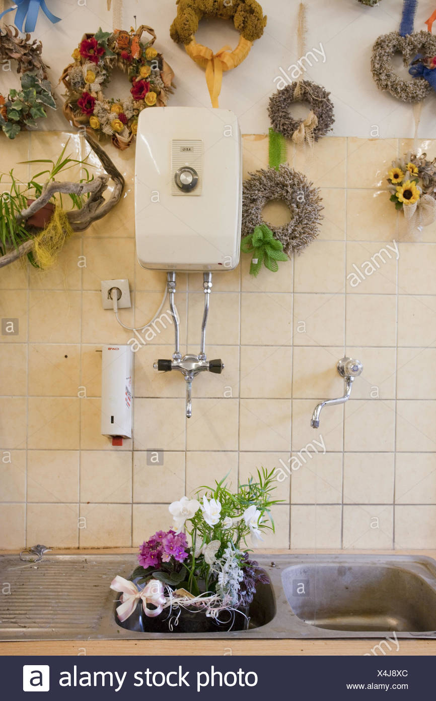 Austria Upper Austria Linz Cuisine Sink Boiler Wall Floral
