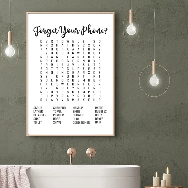 Dozili Forget Your Phone Bathroom Word Search Funny Bathroom Decor