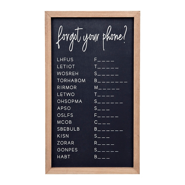 Wood Canvas Wall Hanging Bathroom Word Search Forgot Phone Wall Art