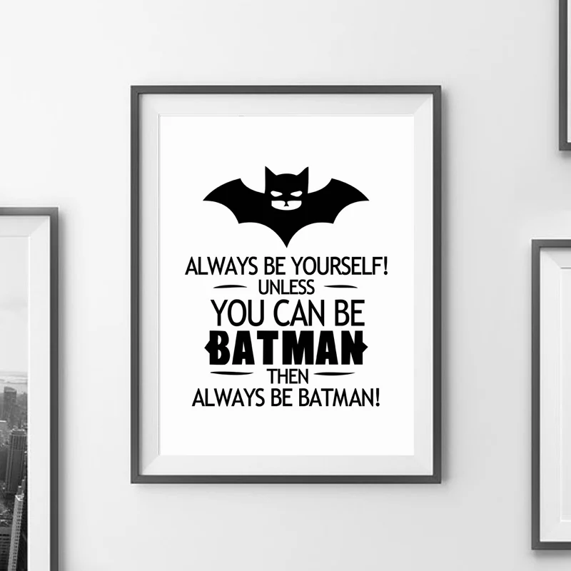 Superhero Batman Art Prints Poster Black White Typography Quotes