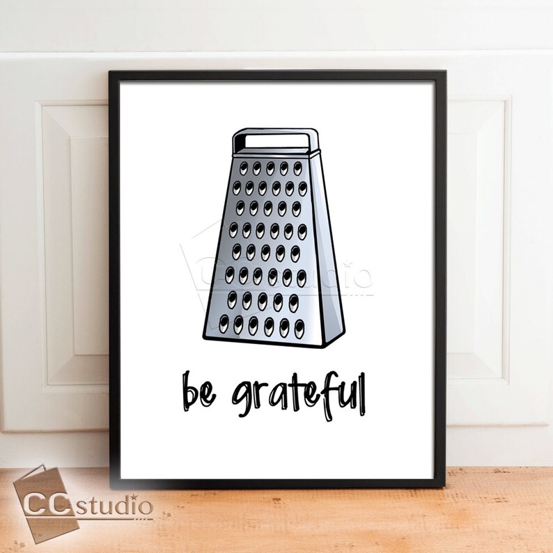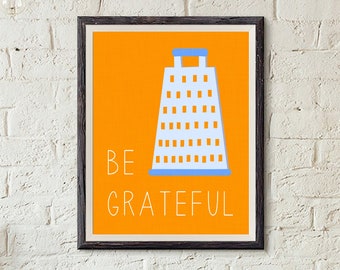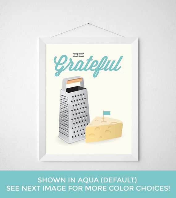 Cheese Grater Print Be Grateful Kitchen Poster Art Decor Etsy