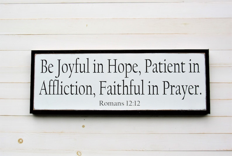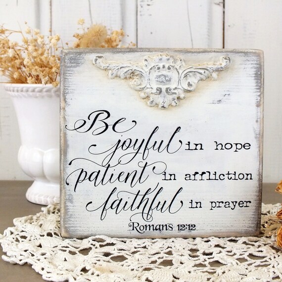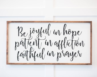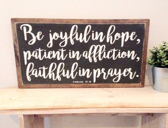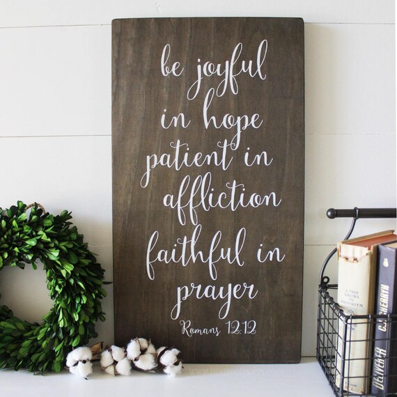 Be Joyful In Hope Patient In Affliction Wood Sign Bible Etsy