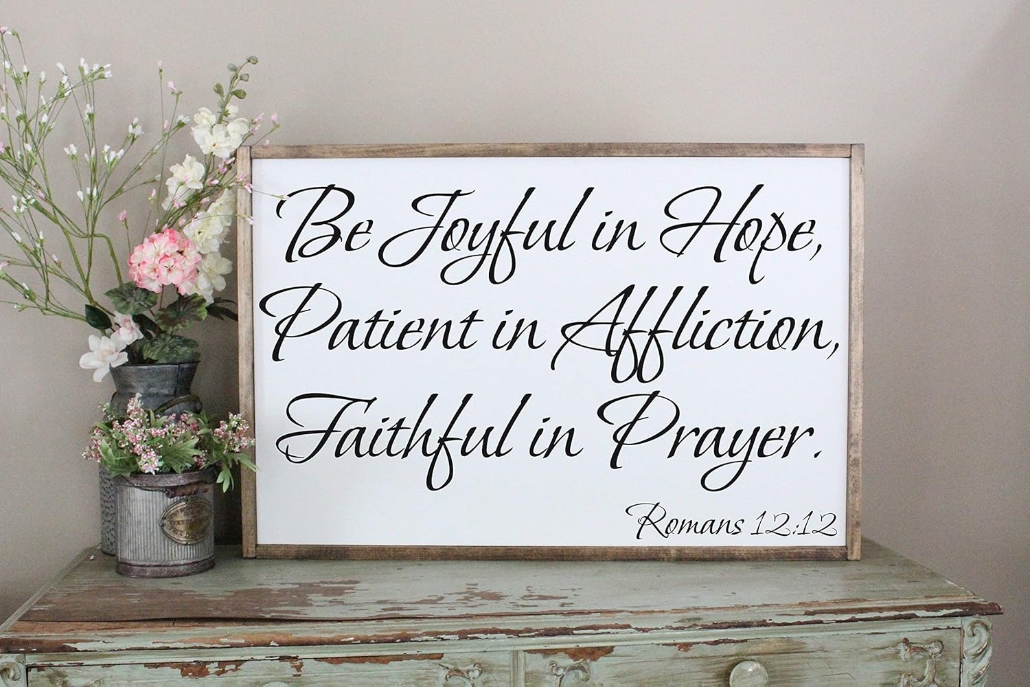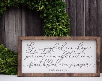 Wood Sign Romans 12 12 Be Joyful In Hope Patient In Affliction