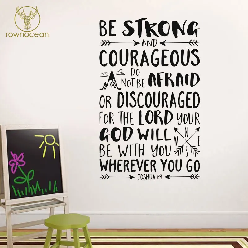 Joshua 19 Wall Decal Quote Be Strong And Courageous Wall Vinyl