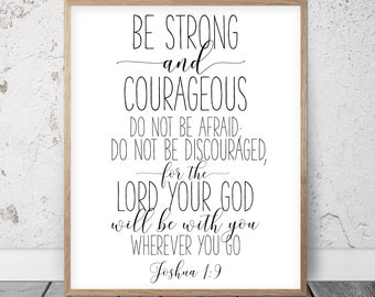 Printable Be Strong And Courageous Bible Verse Wall Decor Art