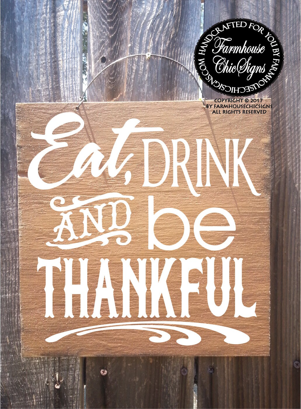 Thankful Sign Eat Drink And Be Thankful Thanksgiving Decoration