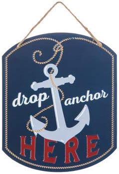 Amazon Com Anchor Here Metal Wall Decoration Beach Nautical Themed Home Coastal Accent Decor Everything Else