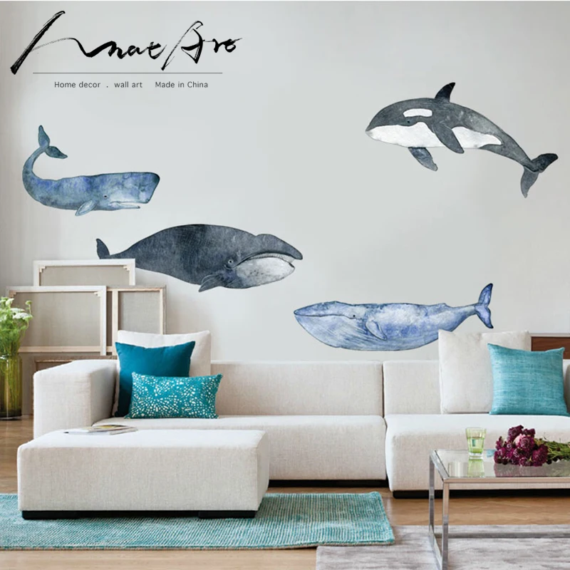 Diy Wall Stickers Marine Animals Stickers Beach Sharks Watercolors