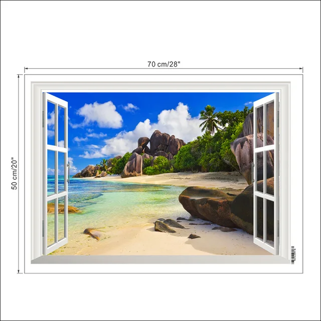 3d Window View Sea Beach Wall Stickers For Home Decor Living Room