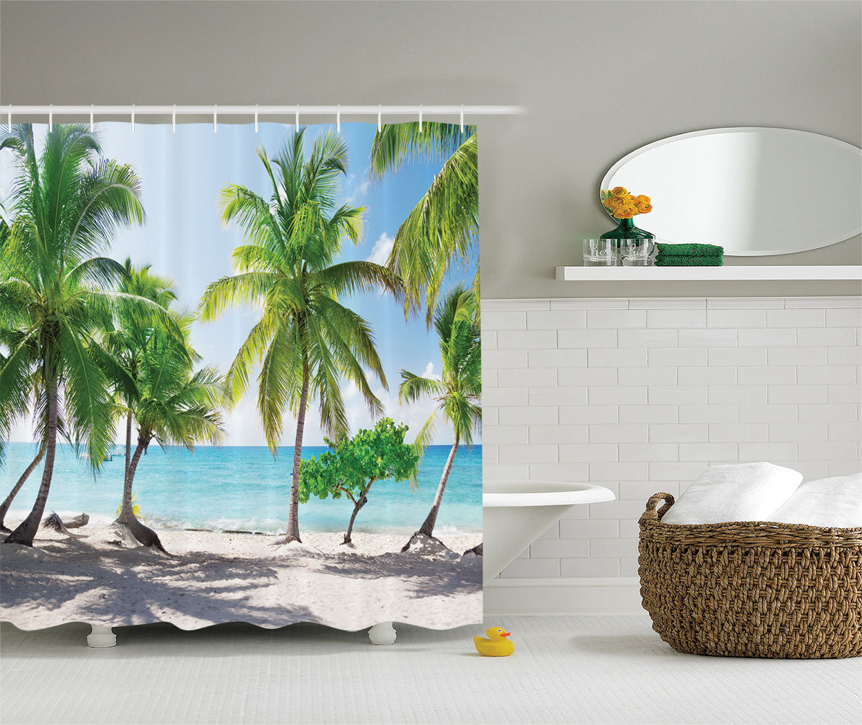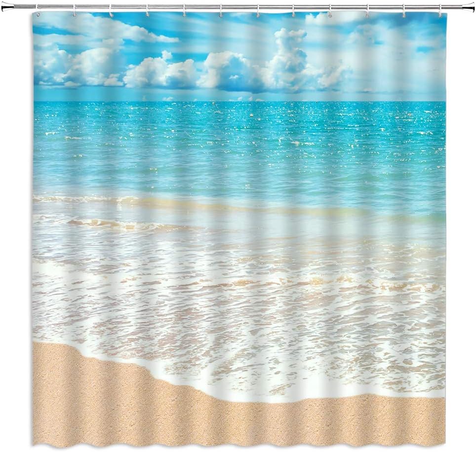 Amazon Com Ocean Beach Shower Curtains Blue Sky Scenery Waterproof Polyester Fabric Home Bathroom Decor Accessories Curtain Set Machine Washable 69 X 70 Inch Includes Hooks Kitchen Dining