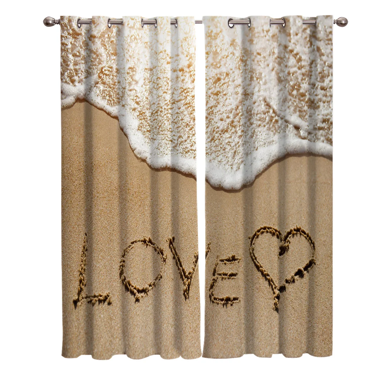 Love Heart Beach Waves Yellow Sand Sunset Window Curtains Curtains