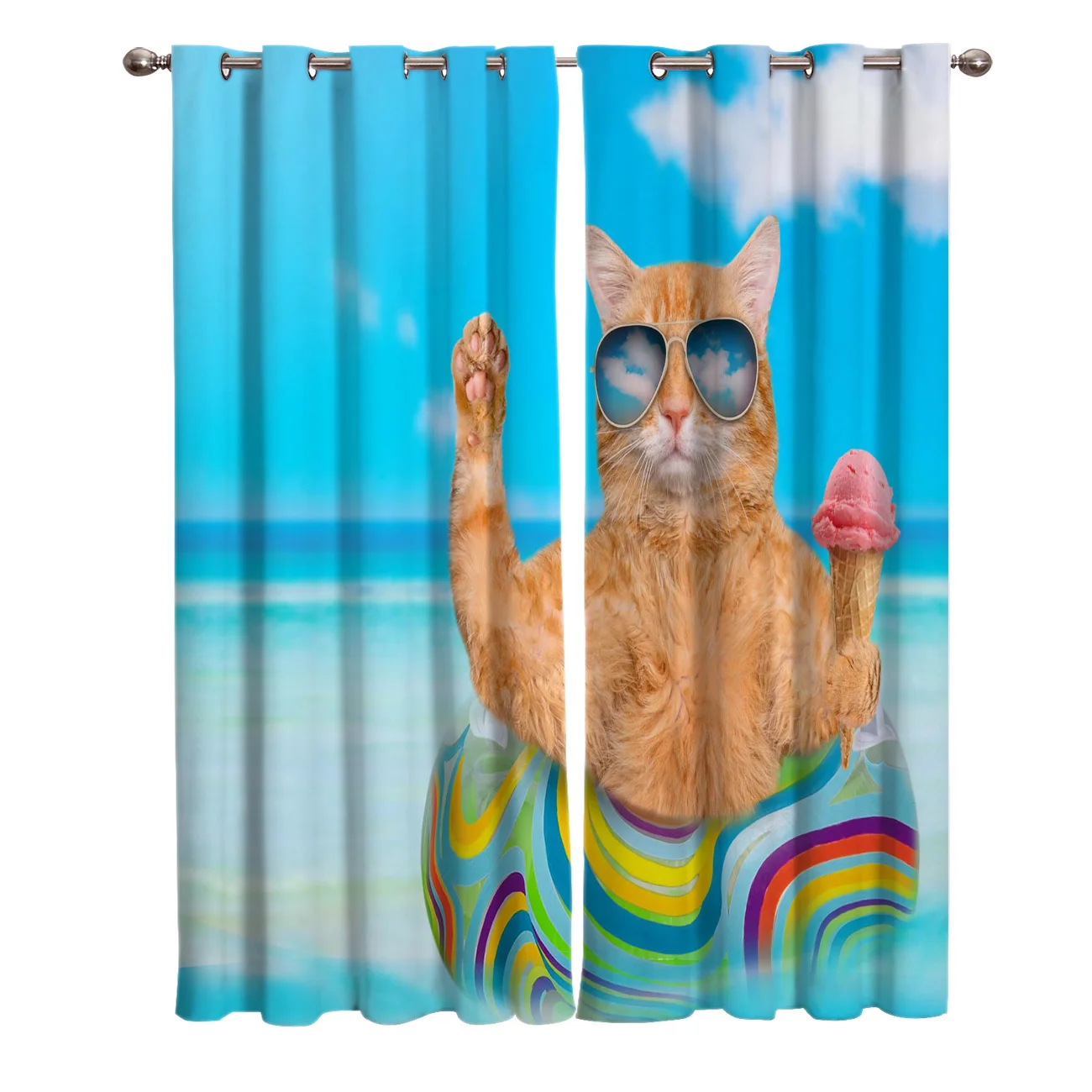 Cat Ice Cream Sunglasses Beach Window Curtains Curtains For Living