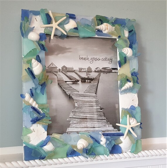 Beach Decor Sea Glass Frame Nautical Decor Beach Glass Frame Etsy