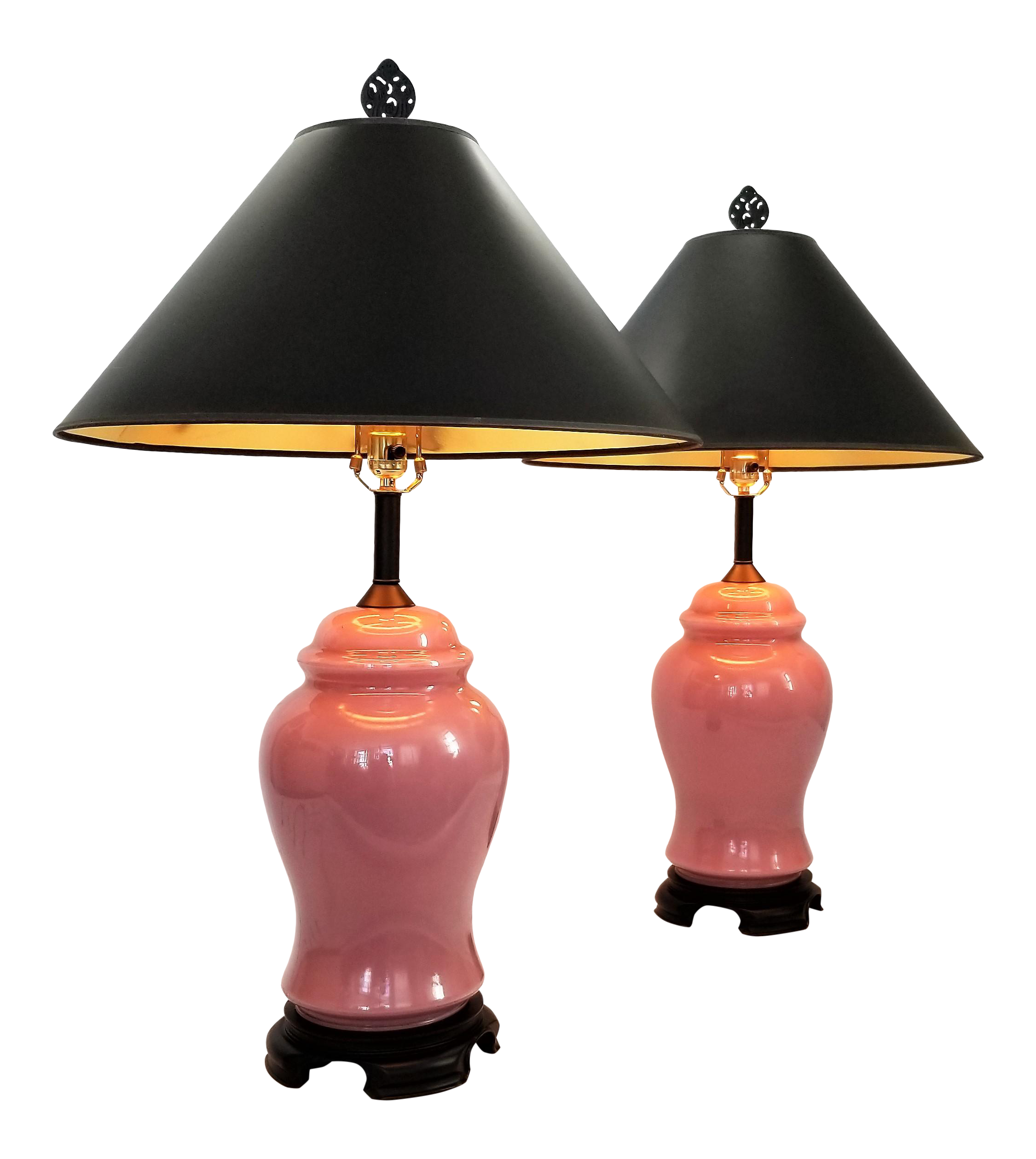 Vintage Pink Glass And Black Table Lamps A Pair Restored