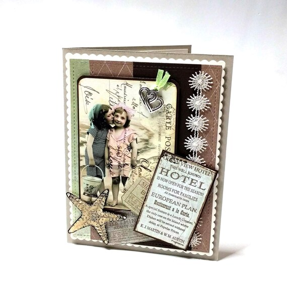 Beach Theme Collage Card Friendship Vintage Style Shabby Etsy