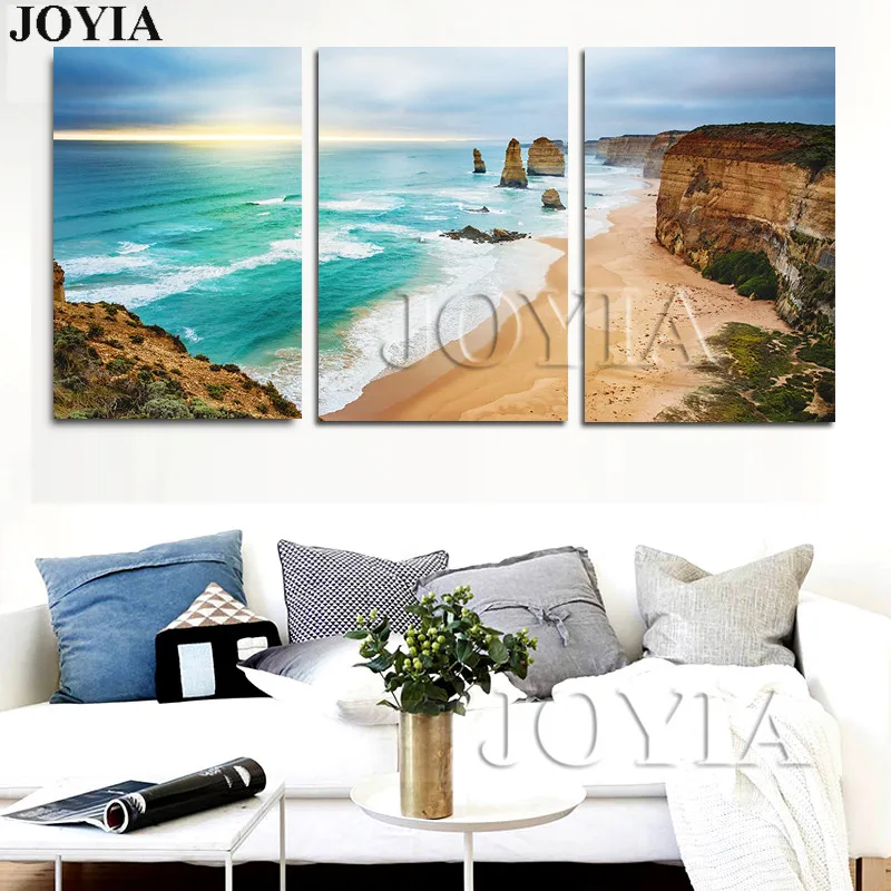 Seascape Beach Wall Pictures Triptych Painting Set Modern Canvas