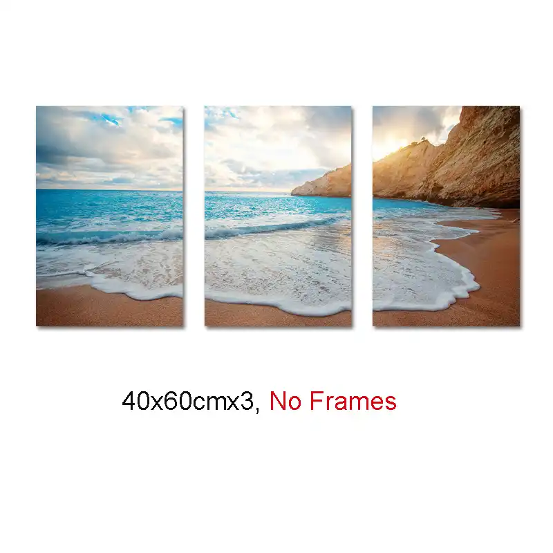 Triptych Wall Art Canvas Prints Home Decoration Sunset And Waves