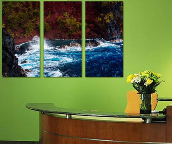 Large Beach Art 3 Three Panel Triptych Canvas Wall Art Beach Etsy
