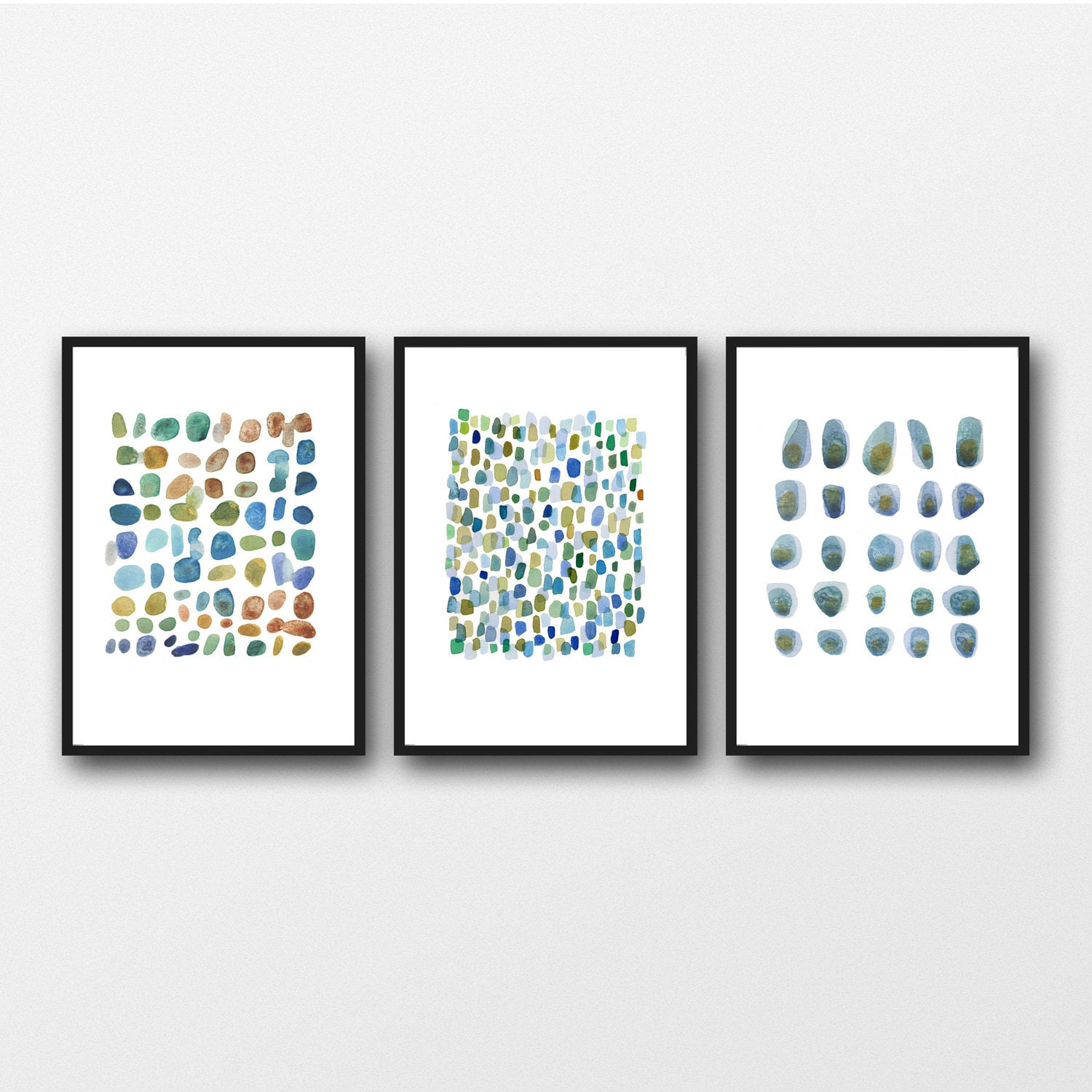 Guest Room Decor Triptych Wall Art Pebbles Art Prints Abstract