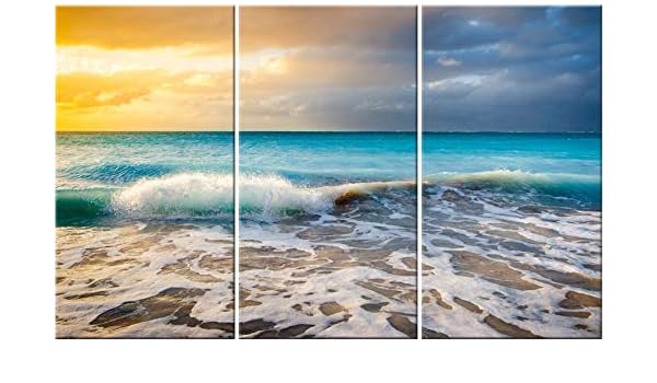 Amazon Com Glifporia Triptych Wall Art Beach Exotic Wavy Sea
