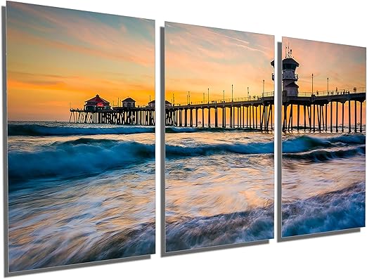 Huntington Beach Docks Canvas Print Wall Art 3 Panel Split