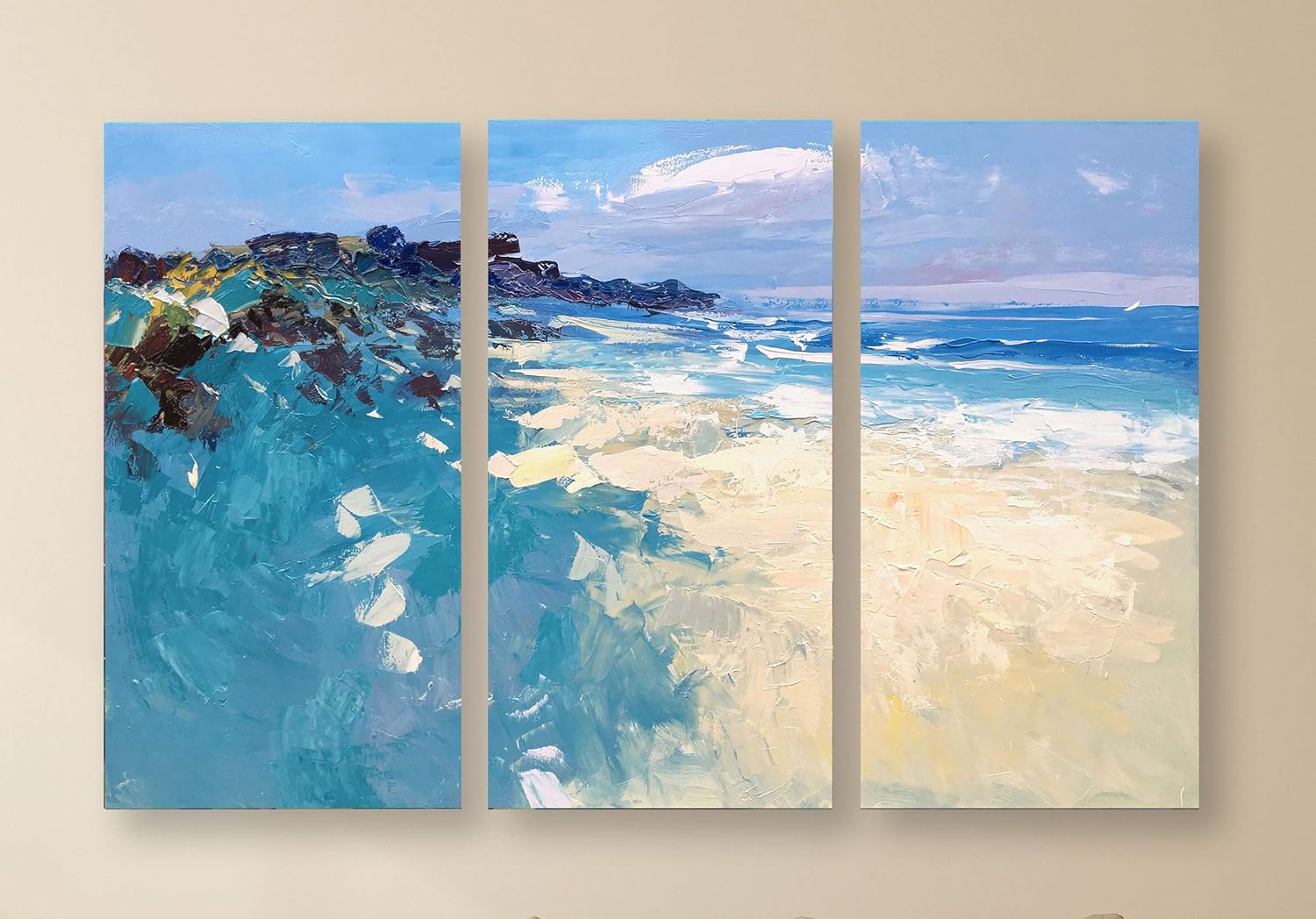 Set Of 3 Beach Painting On Canvas Original Triptych Ocean Large