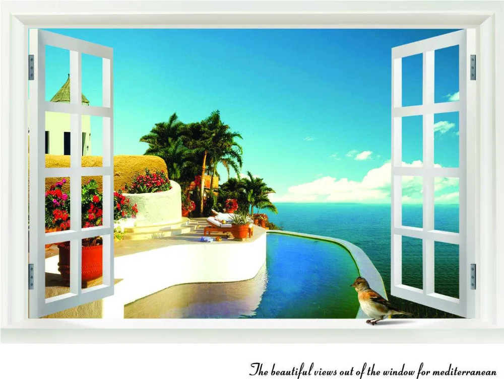 Sea Beach Island 3d Window Wall Stickers For Bedroom Home