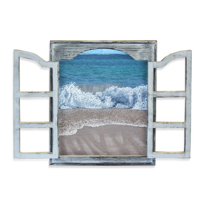 Beach Window 40 Inch X 28 Inch Framed Wood Wall Art Bed Bath