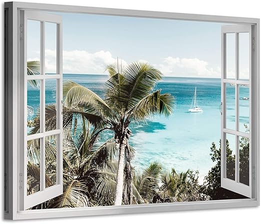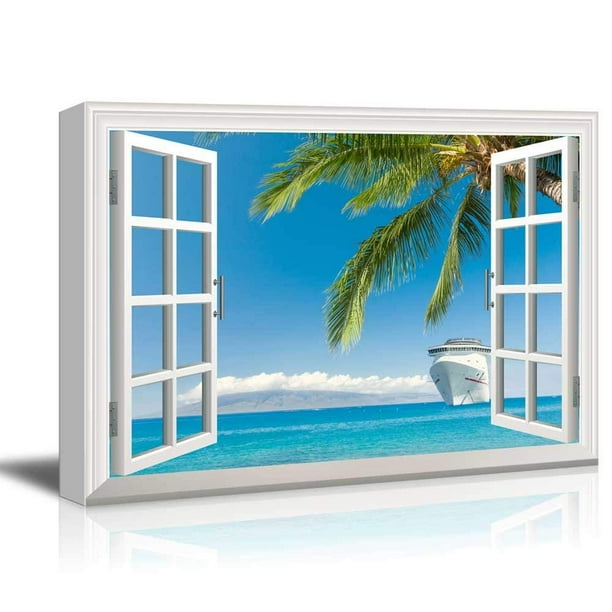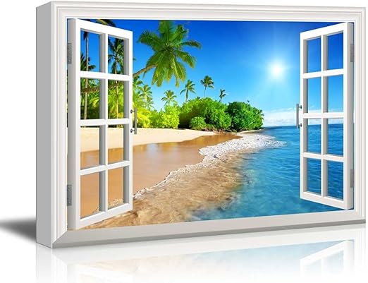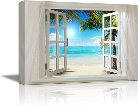 Amazon Com Beach Window Canvas Wall Art Open Window Tropical