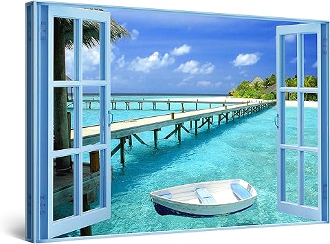 Feeby Image Print View 3d Window Canvas Wall Art Decor Seaside