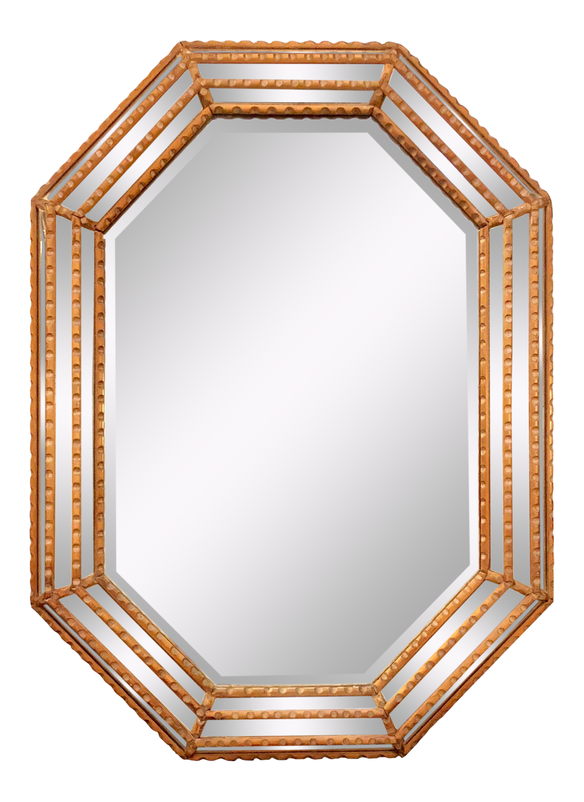 Italian Mid Century Beaded And Beveled Octagonal Wall Mirror