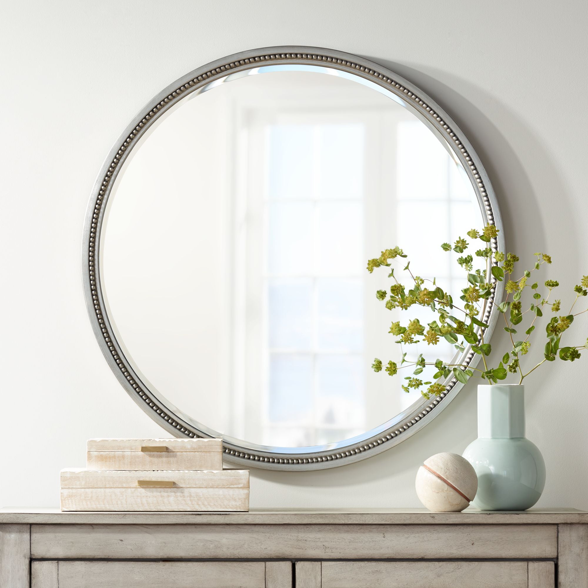 Noble Park Lorraine Silver 32 3 4 Round Beaded Trim Wall Mirror