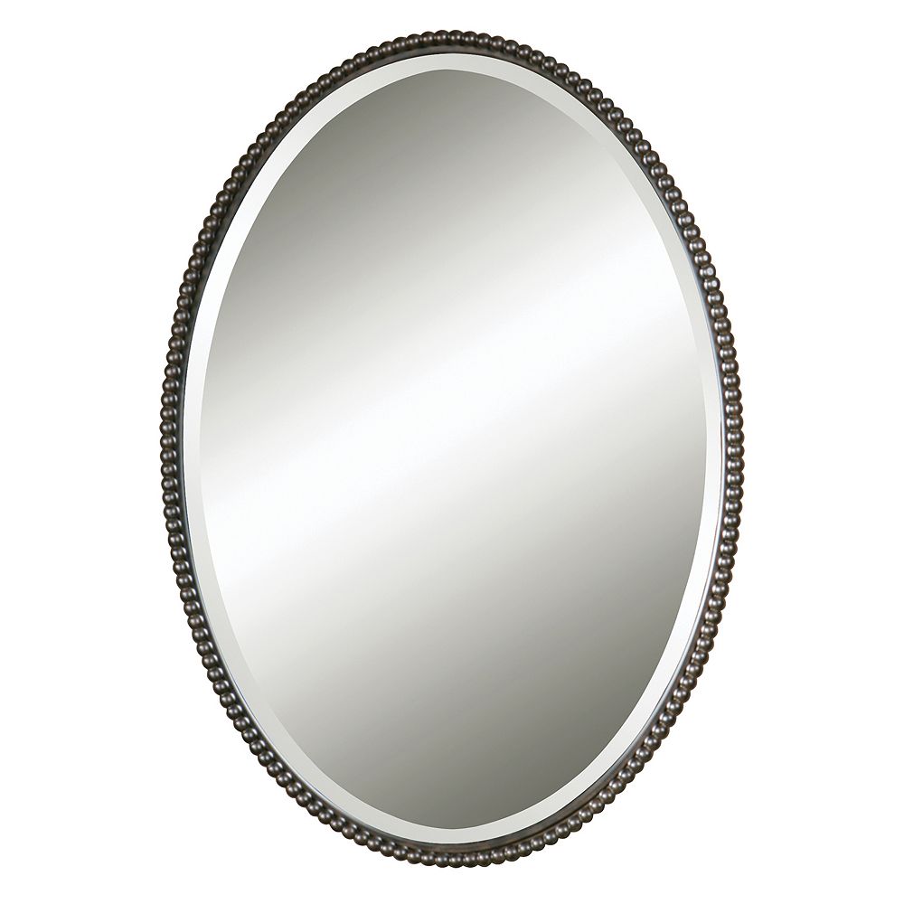 Sherise Oval Beveled Mirror With Beaded Frame Contemporary
