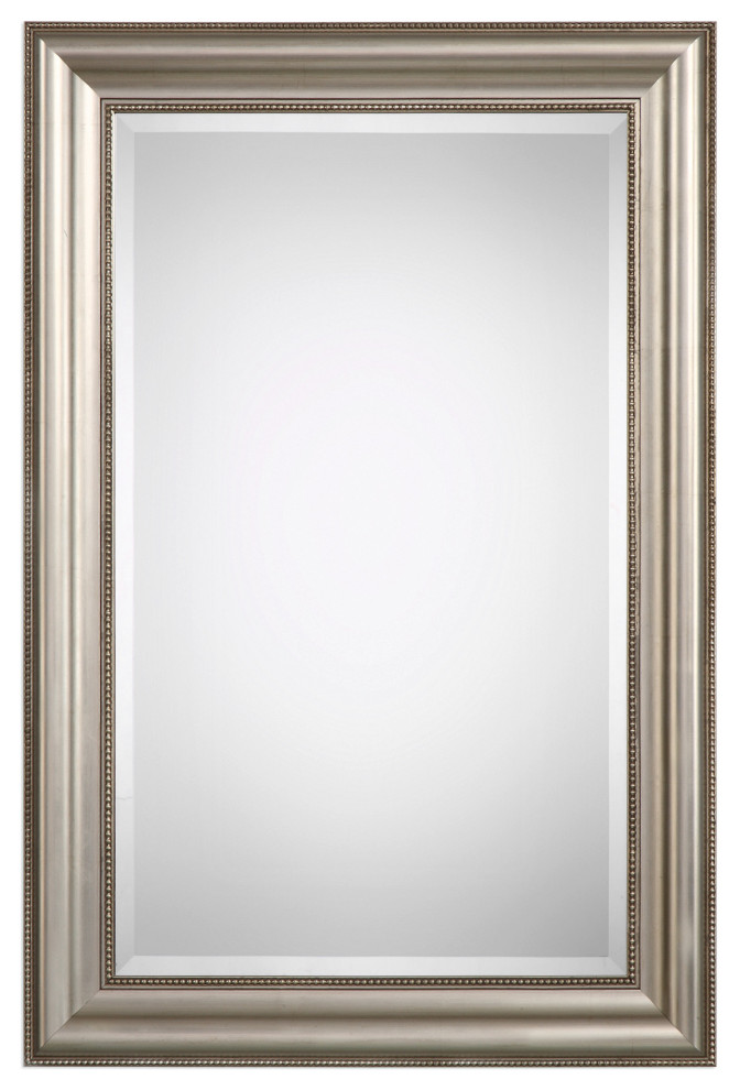 Beaded Silver Leaf Rectangular Beveled Wall Mirror Large 37