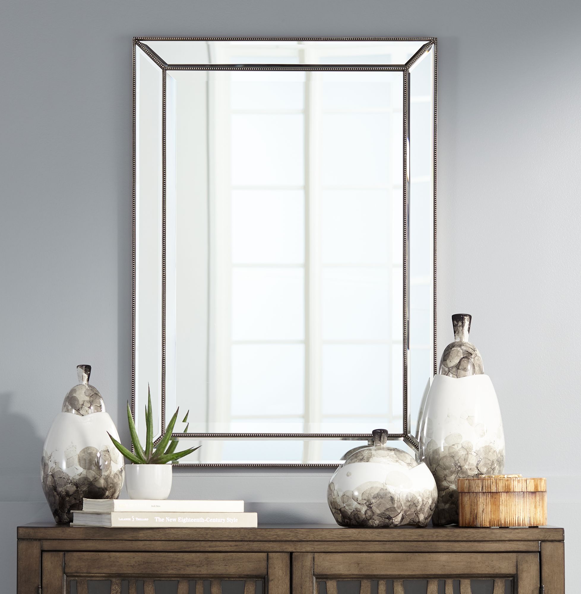 Roseau Silver Pewter 24 X 34 Beaded Wall Mirror 1w988 Lamps