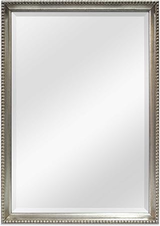 Large Silver Beaded Edge Rectangular Metal Beveled Wall Mirror 31
