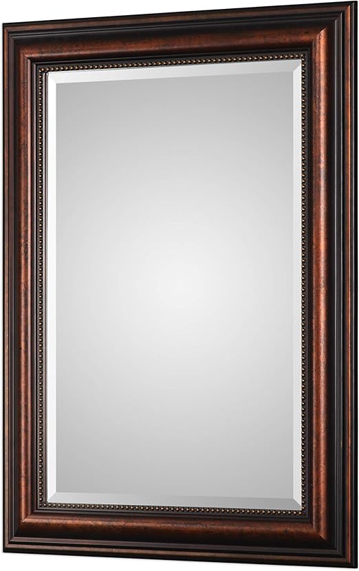 Beaded Edge Wall Mirror Bronze 32 Metal Beveled Rectangle Bathroom