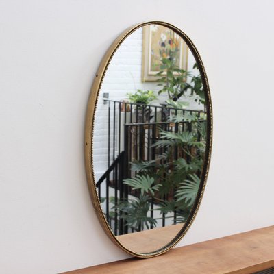 Mid Century Italian Oblong Shaped Wall Mirror With Beaded Brass