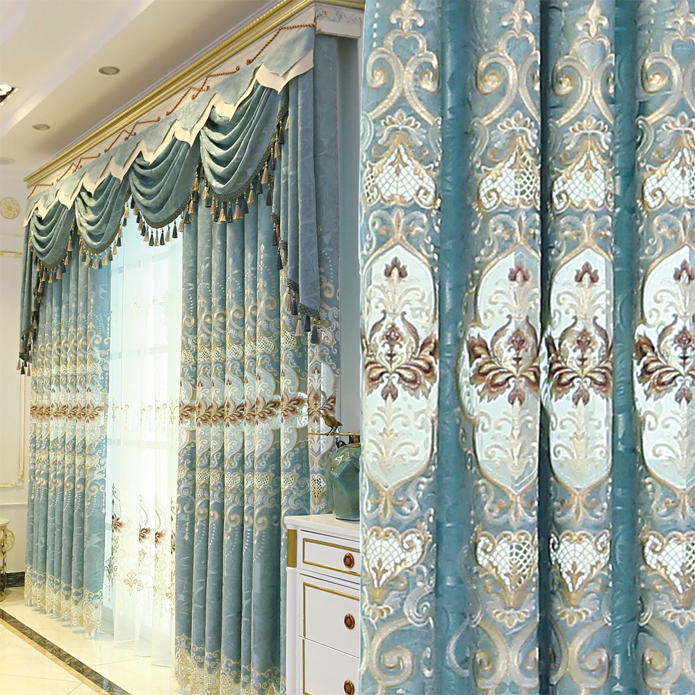 Blue Floral Luxury Curtains Living Room Embroidery Bedroom Window