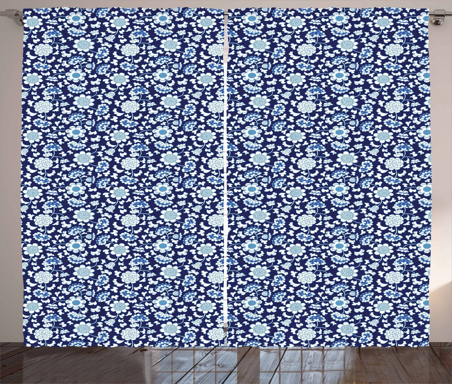 East Urban Home Ambesonne Blue Curtains Chinese Floral Garden
