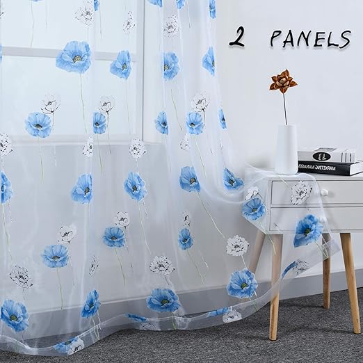 Amazon Com Huto Sheer Curtain Panels Rod Pocket Blue Floral