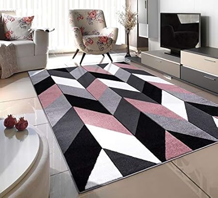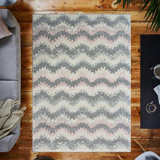 Amazon Com Modern Zigzag Chevron Pastel Blush Pink Grey Living Room Area Rug Kitchen Dining