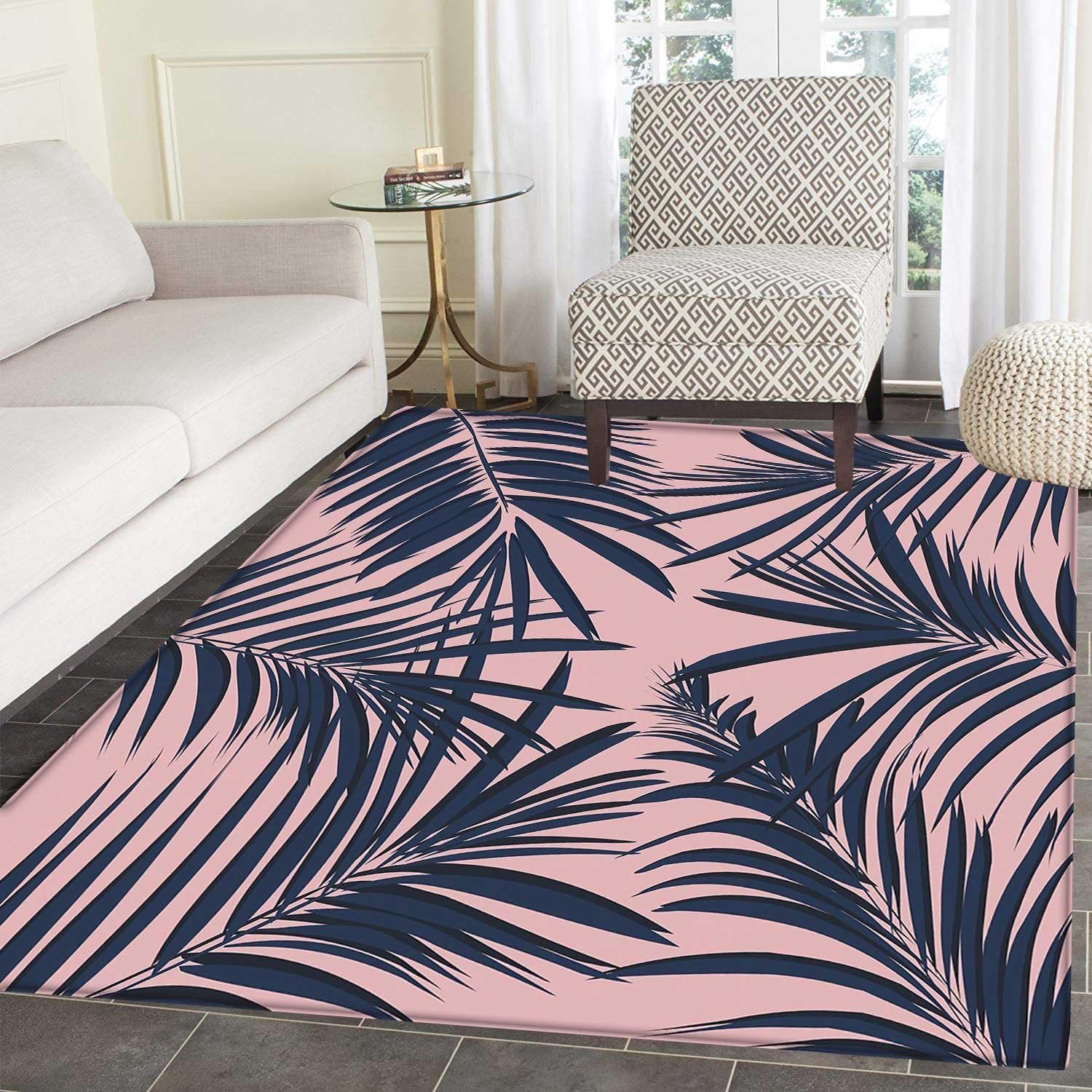 Navy And Blush Area Rug Carpet Summer Exotic Floral Tropical Palm Tree Leaf Banana Plant Hawaii Living Dinning Room And Bedroom Rugs 3 X4 Night Blue Pale Pink Amazon Co Uk Kitchen Home