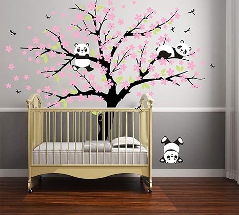 Amazon Com Three Playful Pandas Bear On Cherry Blossom Tree Wall
