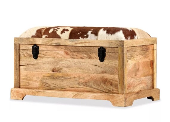 Cow Hide Storage Bench End Of Bed Living Room Bedroom Extra Seat