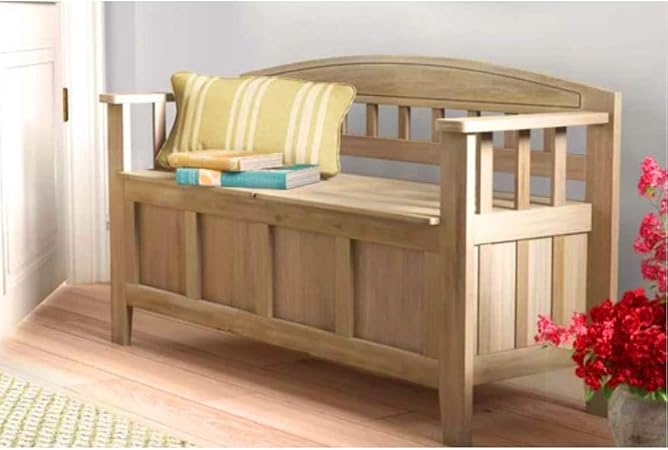 Hall Storage Bench Rustic Wood With Back Lid Lift Top Armrests