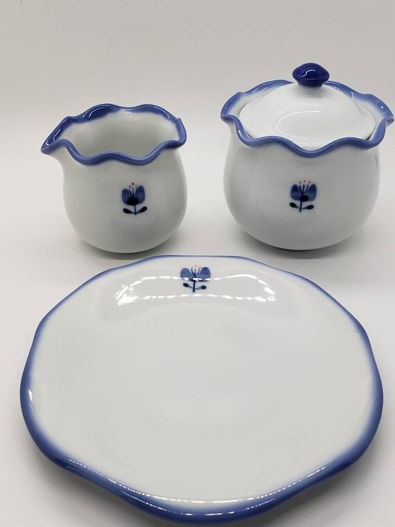Vintage Bee House Blue And White Cream Sugar Bowl And Butter Etsy