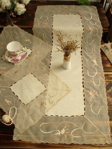 Beige Polyester Handmade Cutwork Flower Embroidered Table Runner