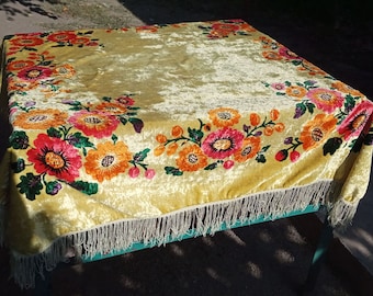 Beige Floral Table Scarf Vintage Belgian Velvet Table Runner
