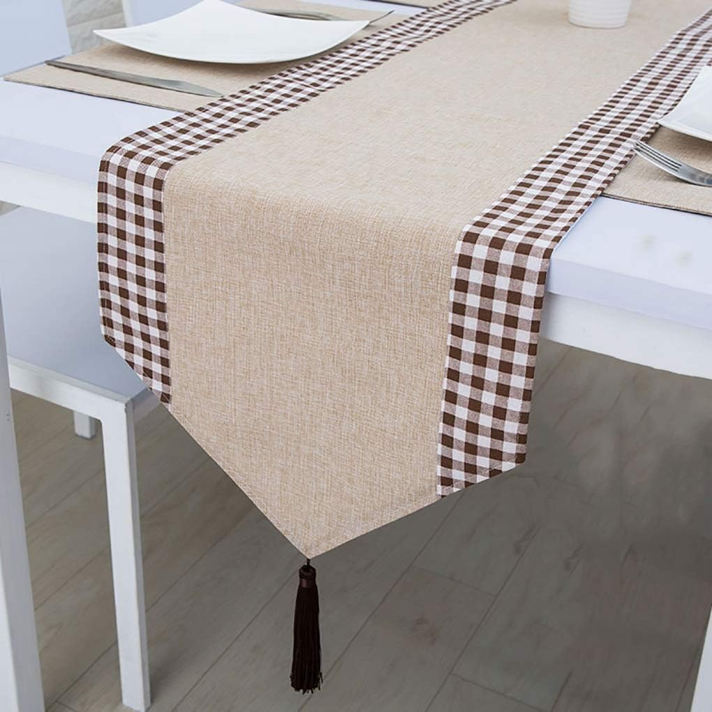 Amazon Com Phnam Brown And Beige Table Runner With Tassels Long Linen Cotton Coffee Dining Table Cloth Runners Non Slip For Home Kitchen Party Wedding Decorations Machine Washable Home Kitchen